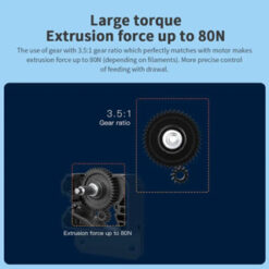 Mô-men xoắn cao – lực đùn 80N: Bánh răng truyền 3,5:1 kết hợp động cơ tối ưu, cho lực đùn mạnh mẽ và chính xác.