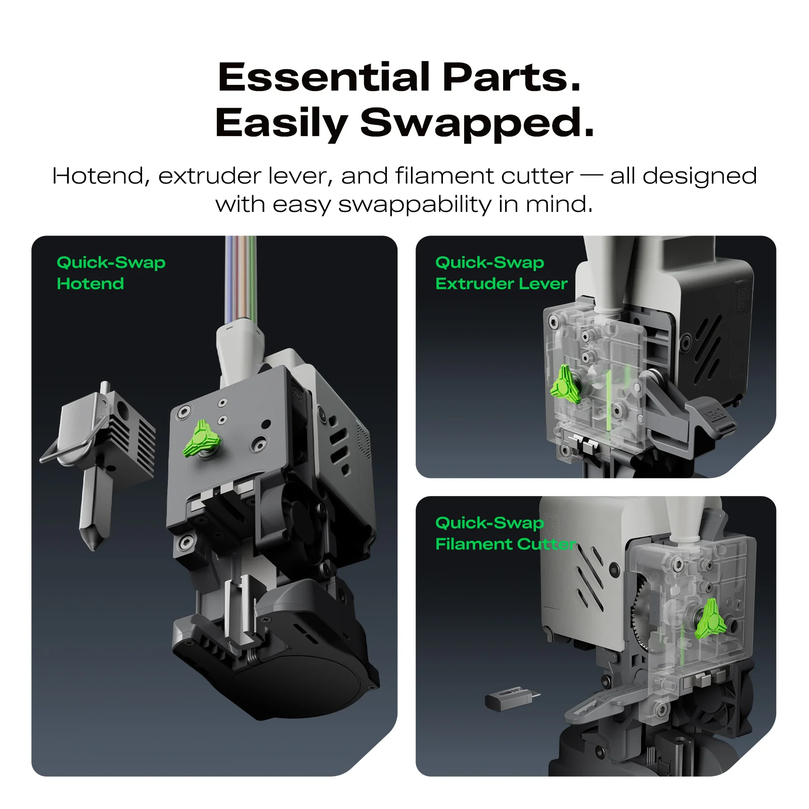 Hotend, cần gạt máy đùn và máy cắt sợi nhựa Thay thế nhanh chóng và an toàn chỉ trong 5s- tất cả đều được thiết kế với khả năng hoán đổi dễ dàng