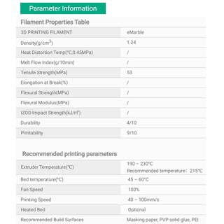 eSun eMarble là dòng vật liệu in 3D dựa trên PLA, được bổ sung hiệu ứng vân đá cẩm thạch độc đáo. Không chỉ dễ in như PLA truyền thống, eMarble còn mang đến bề mặt mờ, đường nét rõ ràng và kết cấu chân thực như đá tự nhiên.
