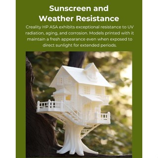 Creality HP ASA sở hữu khả năng chống ăn mòn, lão hóa, bức xạ UV và mưa nắng, giúp các sản phẩm in giữ nguyên màu sắc và độ bền sau thời gian dài sử dụng ngoài trời.