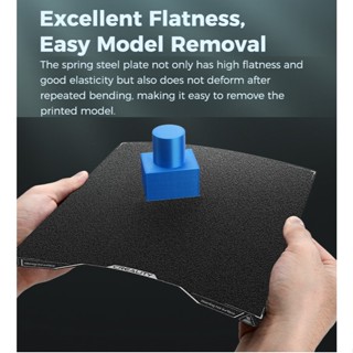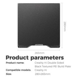 Tấm tạo hình PEI hai mặt màu đen dành cho máy in 3D Creality Hi, giúp cải thiện độ bám dính, độ bền và tiết kiệm chi phí. Bề mặt có họa tiết giúp bám tốt hơn, dễ dàng tháo mô hình sau khi in mà không làm hư bề mặt.