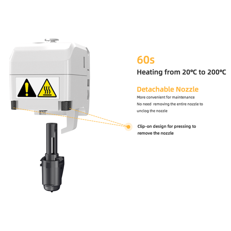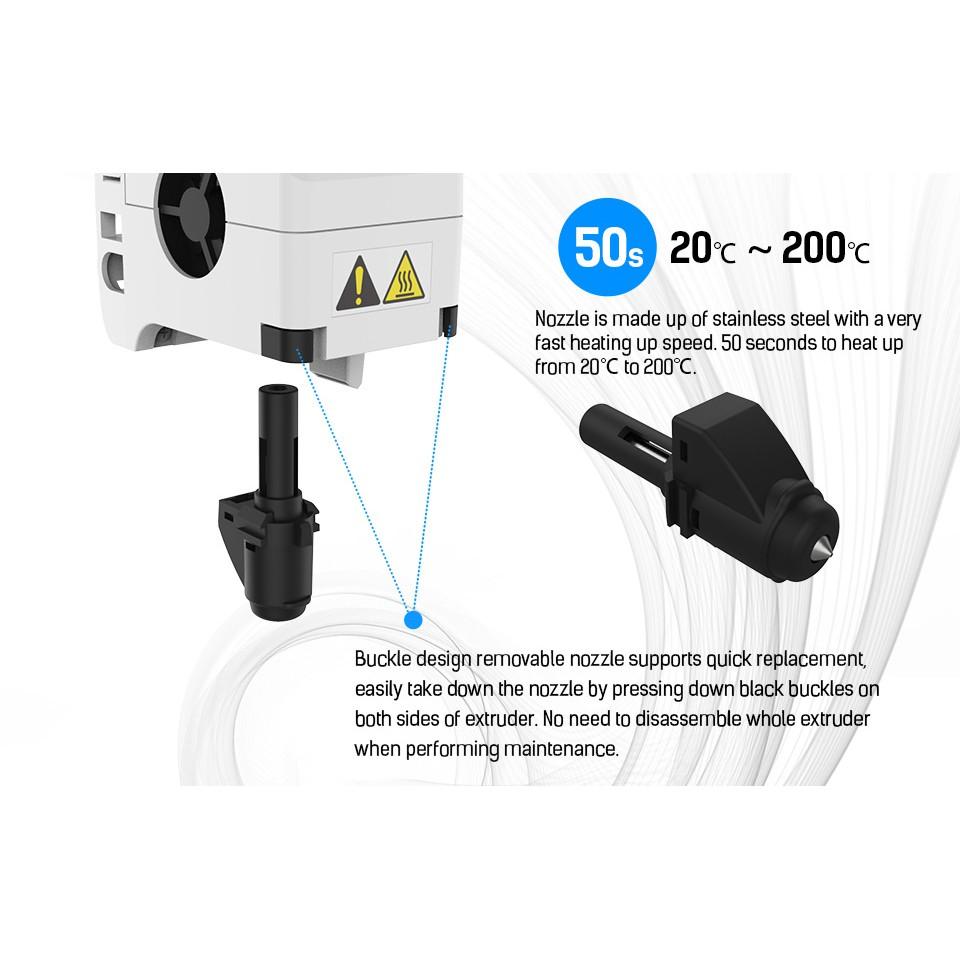 With creative filament feeding design, just put the filament in the inlet and wait for loading from the nozzle. More loading and unloading actions operate just on the touchscreen.