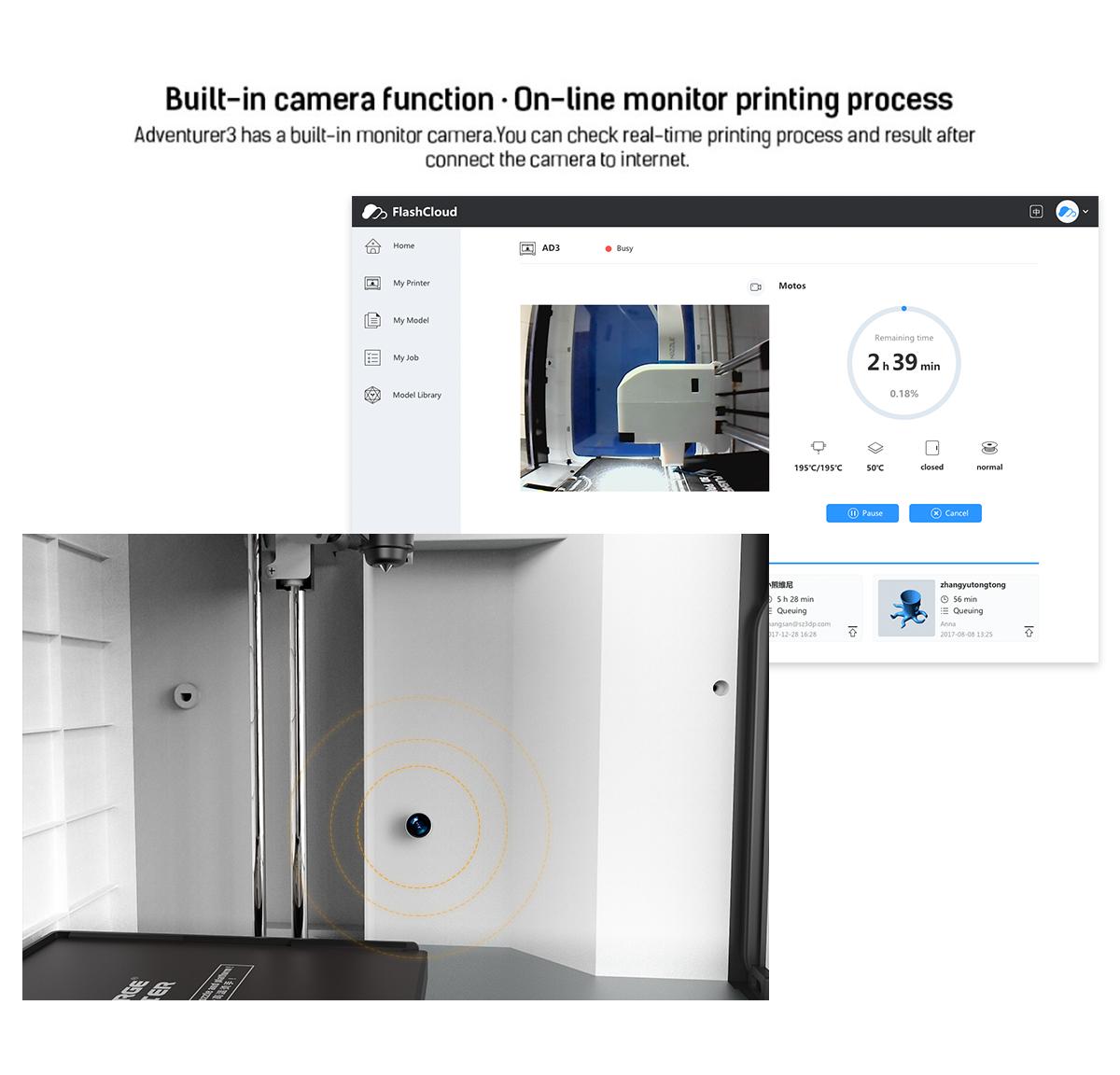 Through FlashCloud or PolarCloud, monitor the printing process without limitation of time and place.
