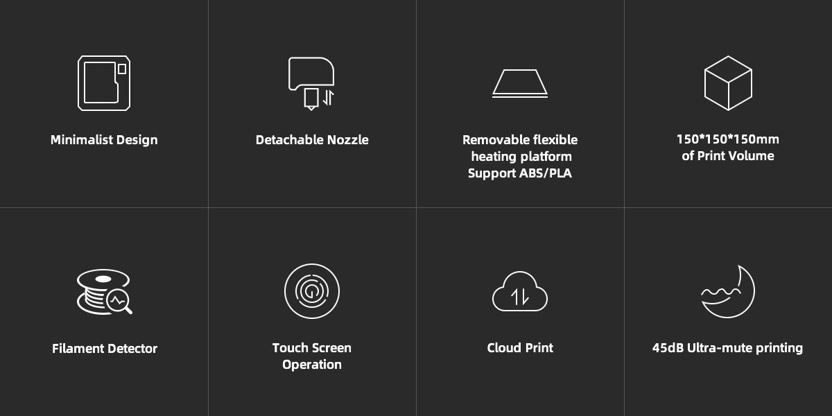 ***Máy còn rất nhiều tính năng hay và ưu việt nhằm mục đích hộ trợ cho người sử dụng một cách đơn giản nhất, dù bạn là người đã am hiểu về máy in 3D hoặc bạn là người mới tìm hiểu về máy in 3D, thì khi bạn sở hữu và sử dụng nó thì bạn sẽ cảm thấy sao in 3D lại đơn giản như vậy. (Chỉ cần tùy chỉnh vài bước đơn giản cho máy, rồi vào 1 trong 3 trang đã được kết nối sẵn với máy, ta lựa chọn file 3D theo chủ đề cần in rồi ấn tải về hoặc in file đã chọn online trực tiếp trên trang đó VD: Flashcloud).