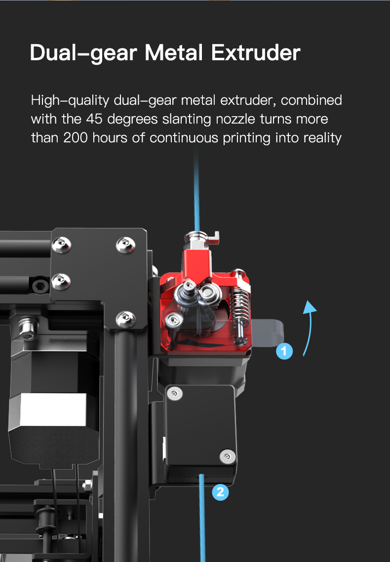 _Máy đùn kim loại bánh răng kép chất lượng cao, kết hợp với đầu phun nghiêng 45 độ biến hơn 200 giờ in liên tục thành hiện thực.
