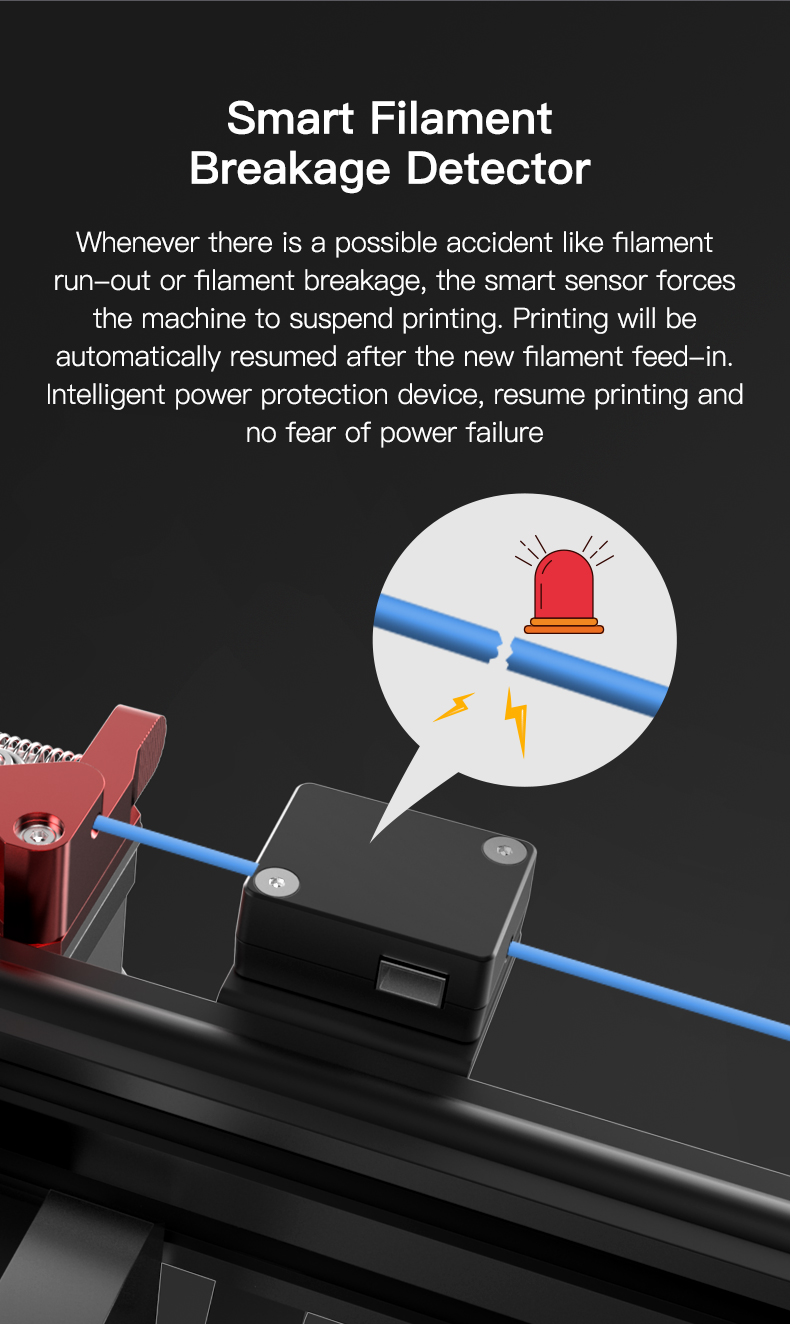 _Bất cứ khi nào có sự cố có thể xảy ra như hết dây tóc hoặc đứt dây tóc, cảm biến thông minh sẽ buộc máy tạm dừng in. Quá trình in sẽ tự động được tiếp tục sau khi nạp vào dây tóc mới.