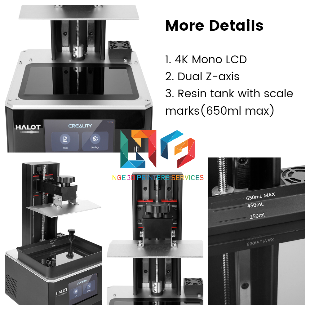 HALOT-ONE PLUS sử dụng màn hình LCD đơn sắc 4K 7,9 inch với âm lượng tăng 73% so với màn hình LCD 6 inch, in ra từng chi tiết của các mẫu máy lớn một cách sống động.
