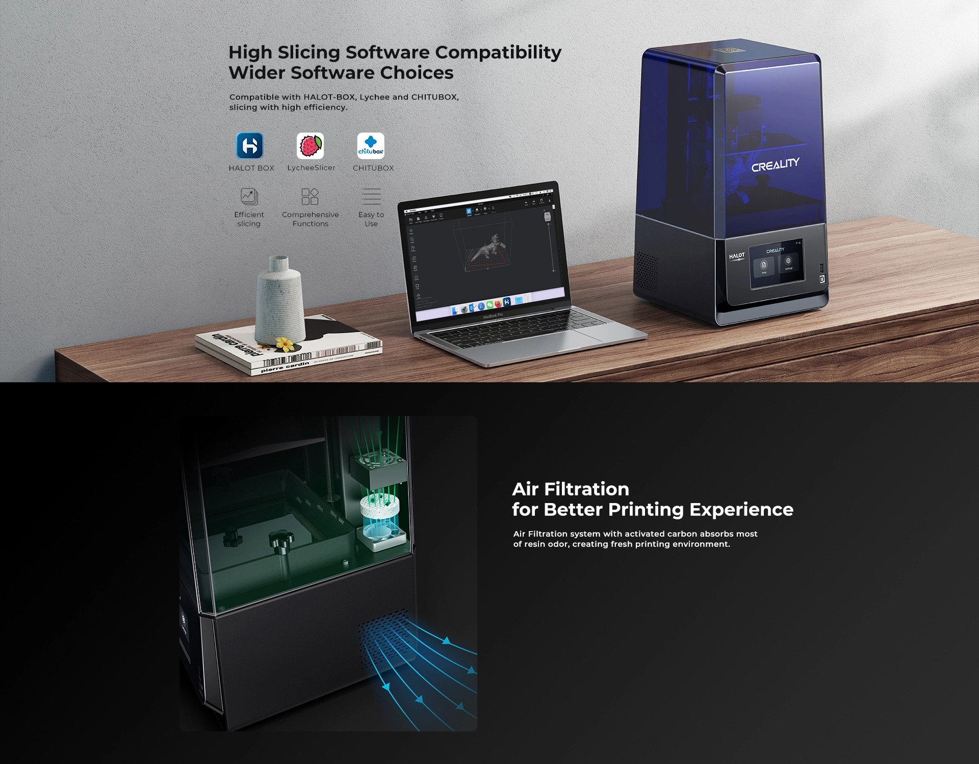 Tương thích với HALOT-BOX, Lychee và CHITUBOX, cắt lát với hiệu quả cao.