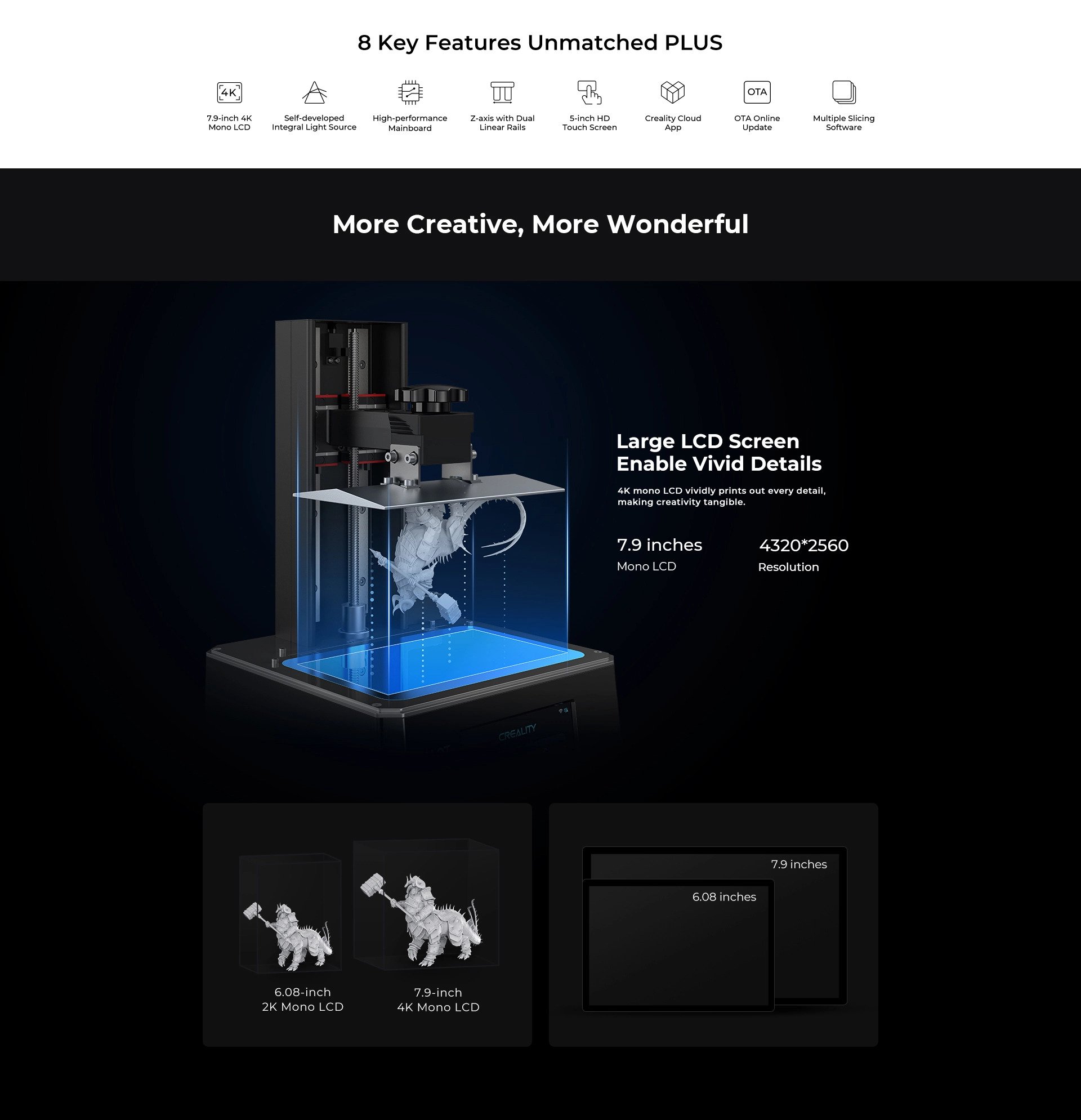 _Màn hình LCD lớn cho phép chi tiết sống động: Màn hình LCD đơn sắc 4K in ra từng chi tiết một cách sống động, giúp khả năng sáng tạo trở nên hữu hình.