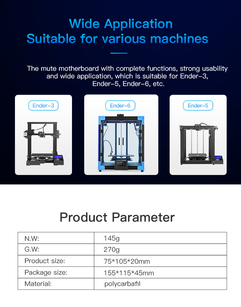 _Bo mạch chủ tắt tiếng với đầy đủ các chức năng, khả năng sử dụng mạnh mẽ và ứng dụng rộng rãi, phù hợp với tất cả máy in trên thị trường như máy DIY.... máy của Hãng Creality dòng Ender 6, v.v.