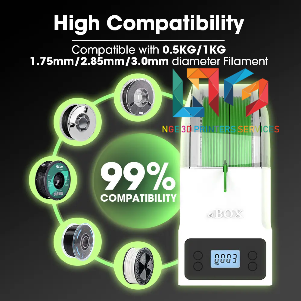 _Nó cũng có khả năng tương thích rộng với hầu hết các loại sợi 0,5 / 1KG, 1,75 / 2,85mm trên thị trường như PLA, ABS, PETG, PVA, ePA, ePA-CF, ePA-GF, PC, TPU-95A, v.v.