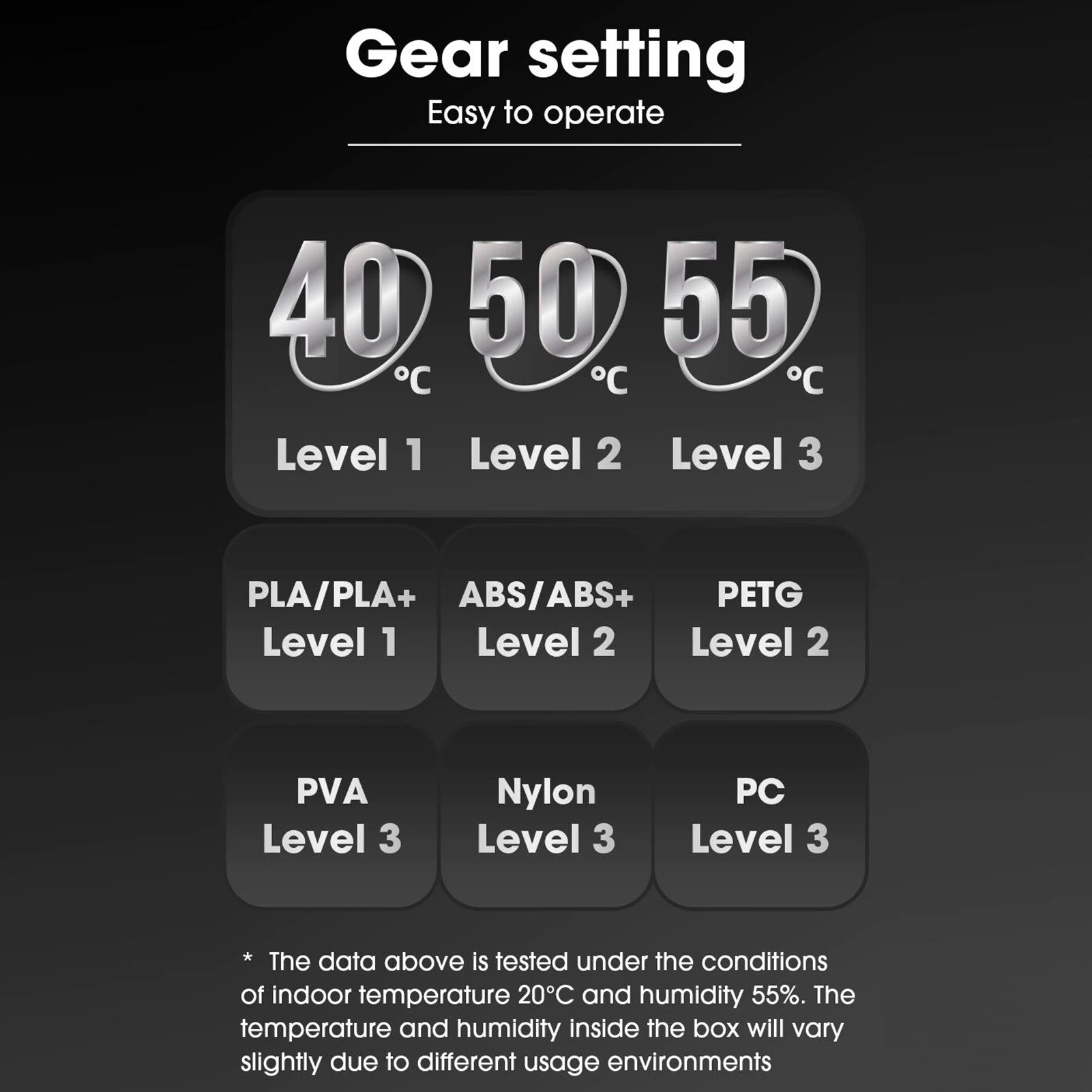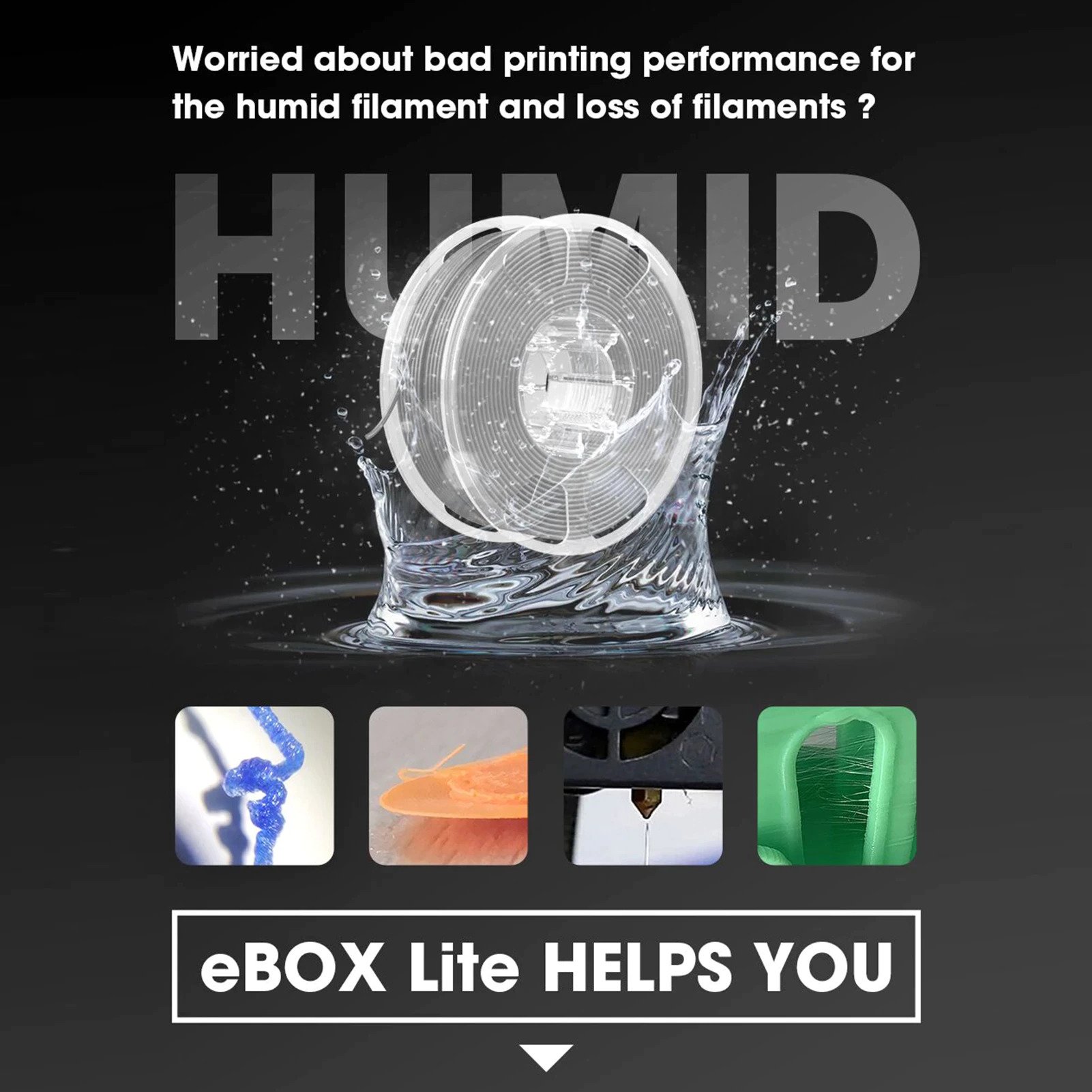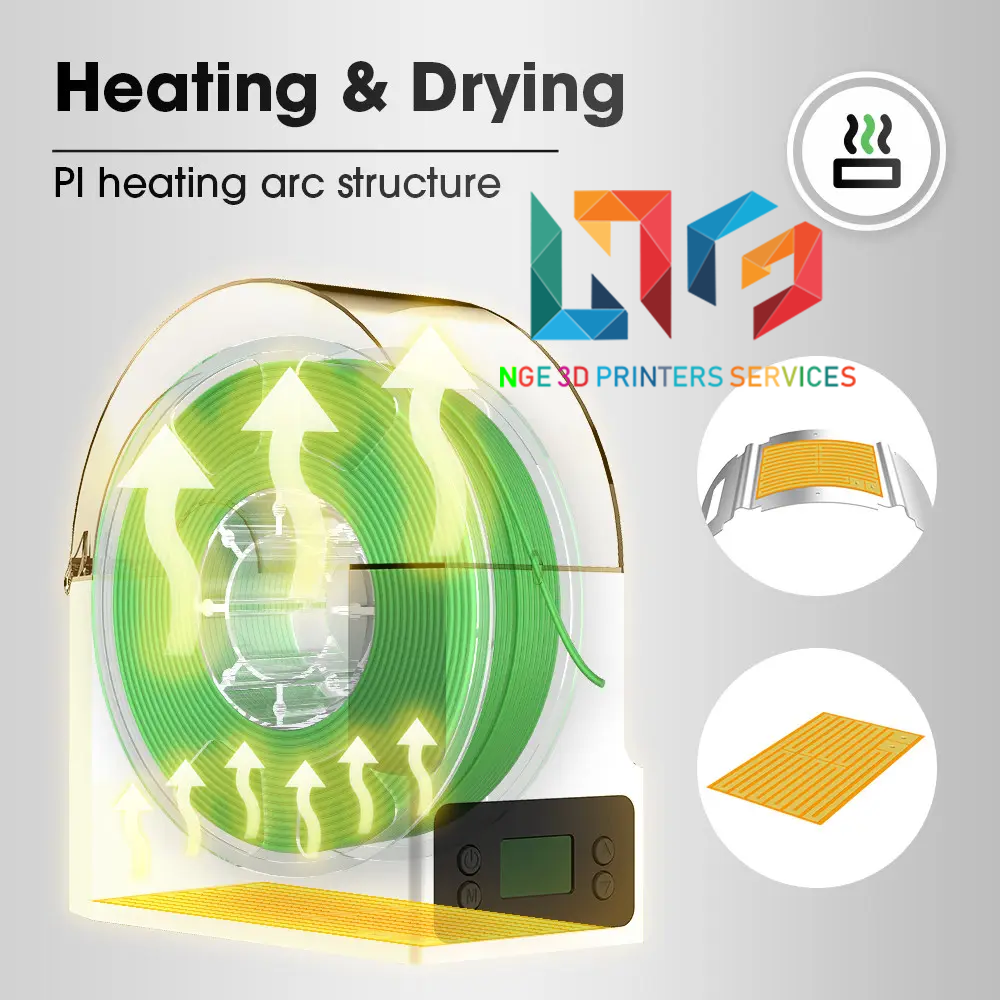_Với sự phổ biến của công nghệ in 3D, việc sử dụng các sợi in 3D cũng tăng mạnh. Trong số đó, FDM đã dần trở thành xu hướng chủ đạo. Các sợi được sử dụng trong in 3D tổng hợp FDM chủ yếu có dạng cuộn, tất cả đều có khả năng hấp thụ nước nhất định, bao gồm nhưng không giới hạn ở PLA, ABS, PETG, PVA, ePA, ePA-CF, ePA-GF, PC, TPU-95A, v.v. Hút ẩm sẽ không chỉ làm giảm khối lượng phân tử mà còn làm cho các sợi sợi trở nên giòn. Một loạt bong bóng xuất hiện trên bề mặt của bản in và mô hình được in sẽ có dạng chuỗi, thô ráp và có màu trắng. Bằng cách sưởi ấm và thêm một quạt để lưu thông và làm bay hơi độ ẩm, các sợi vải được giữ ở trạng thái khô trong quá trình in và chất lượng in cũng được cải thiện.