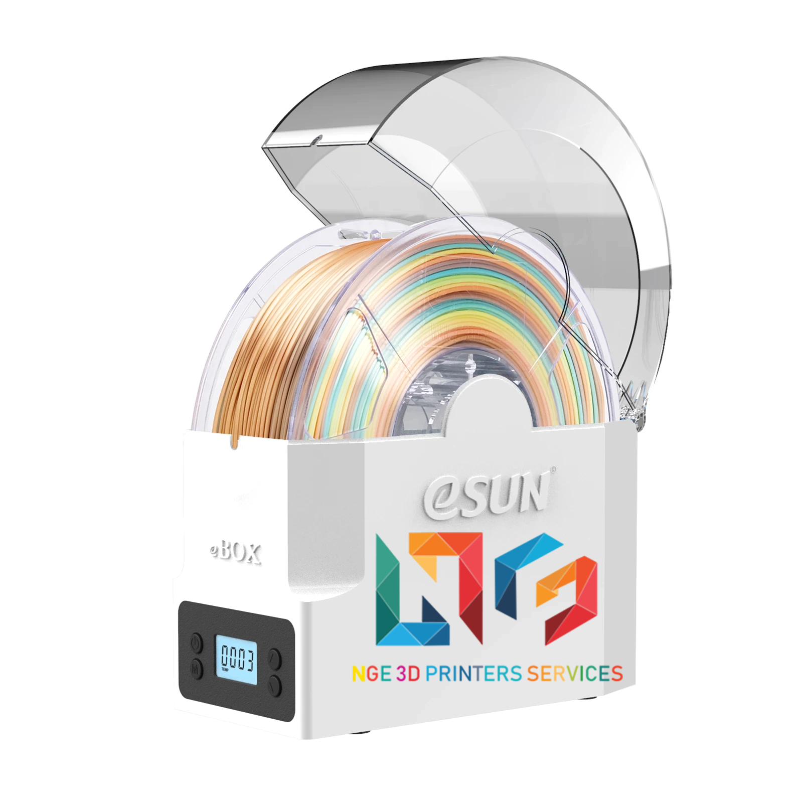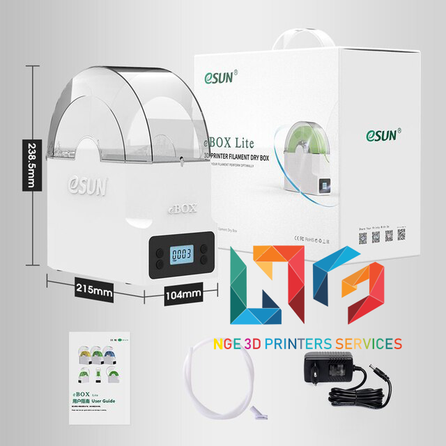 _eBOX Lite là một hộp lưu trữ tiết kiệm chi phí với nhiệt độ và độ ẩm không đổi, chống ẩm và chống bụi và chức năng sưởi ấm được phát triển đặc biệt bởi eSUN cho các sợi in 3D.