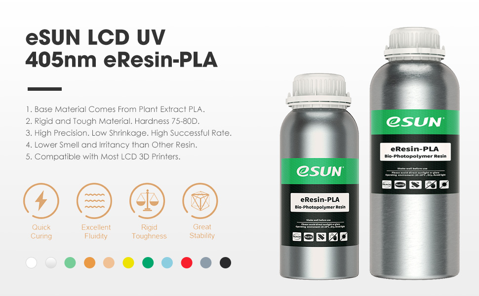 _Nhựa in 3D dựa trên sinh học này sử dụng các monome PLA làm nguyên liệu thô và có các tính năng độc đáo khiến nó trở thành một loại nhựa đa dụng hoàn hảo. Được thiết kế đặc biệt cho nguồn sáng LCD / LED để đạt được chất lượng in tốt hơn. Nhựa PLA, Tương thích với hầu hết các máy in LCD sử dụng ánh sáng bước sóng 405 nm. Độ cứng 75 bờ D và có tốc độ in nhanh hơn, bao gồm Phrozen, Anycubic, Wanhao, Creality, Elegoo, Longer, v.v.