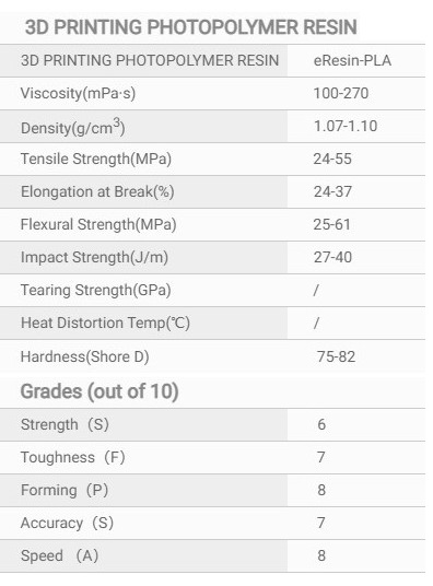 +3D PRINTING PHOTOPOLYMER RESIN eResin-PLA