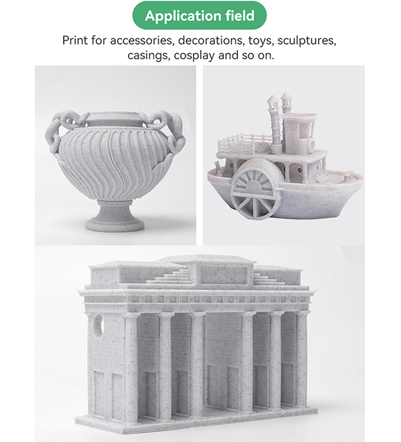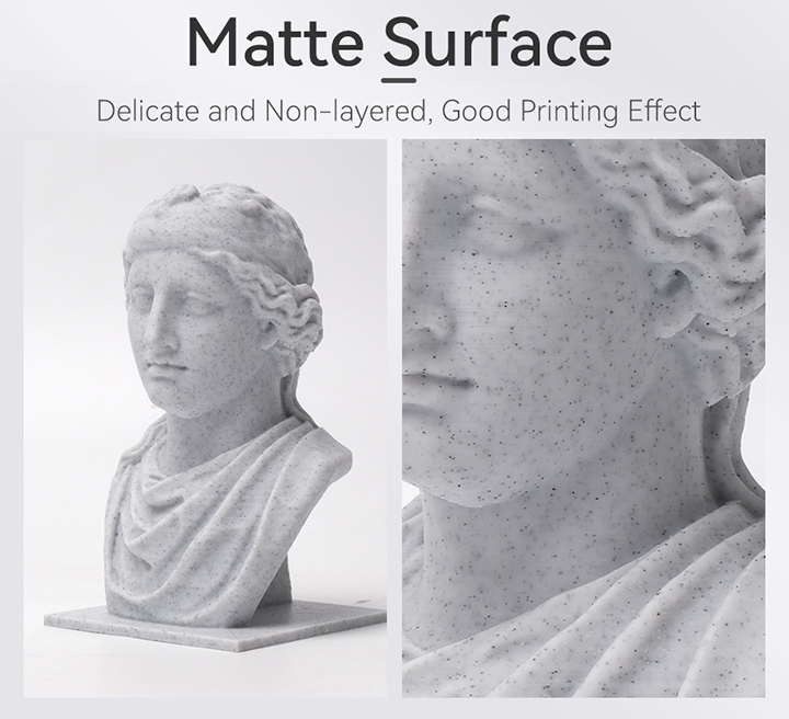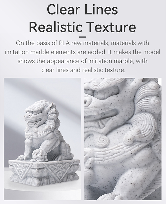 Trên cơ sở vật liệu thô PLA, vật liệu có các yếu tố giả đá cẩm thạch được thêm vào. Nó làm cho mô hình thể hiện sự xuất hiện của giả đá cẩm thạch, với các đường nét rõ ràng và kết cấu thực tế.