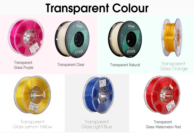 Các màu của Nhựa in 3d ESUN PLA Transparent