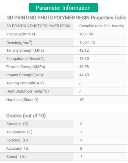 _Điều làm cho loại nhựa trang sức này trở thành một loại polymer chuyên dụng cho các thợ kim hoàn là nó được chế tạo đặc biệt để có độ co ngót thấp so với các loại nhựa 3D khác, đồng thời cung cấp một mức độ cứng thấp. Và mặc dù điều này thoạt đầu có vẻ không phải là một lợi thế, nhưng xếp hạng độ cứng thấp có nghĩa là loại nhựa này, sau khi được in ra, có thể được mài và đục đi một cách tương đối dễ dàng và không có các bộ phận bị vỡ bất ngờ. Như vậy, loại nhựa đúc này cho đồ trang sức không chỉ có thể dễ dàng xử lý sau khi in, mà còn giảm xuống hoàn toàn không có gì khi bị cháy ra khỏi khuôn sáp bị mất, làm cho nó trở thành một trong những giải pháp tốt nhất và giá cả phải chăng nhất hiện nay cho các thợ kim hoàn và những người yêu thích .