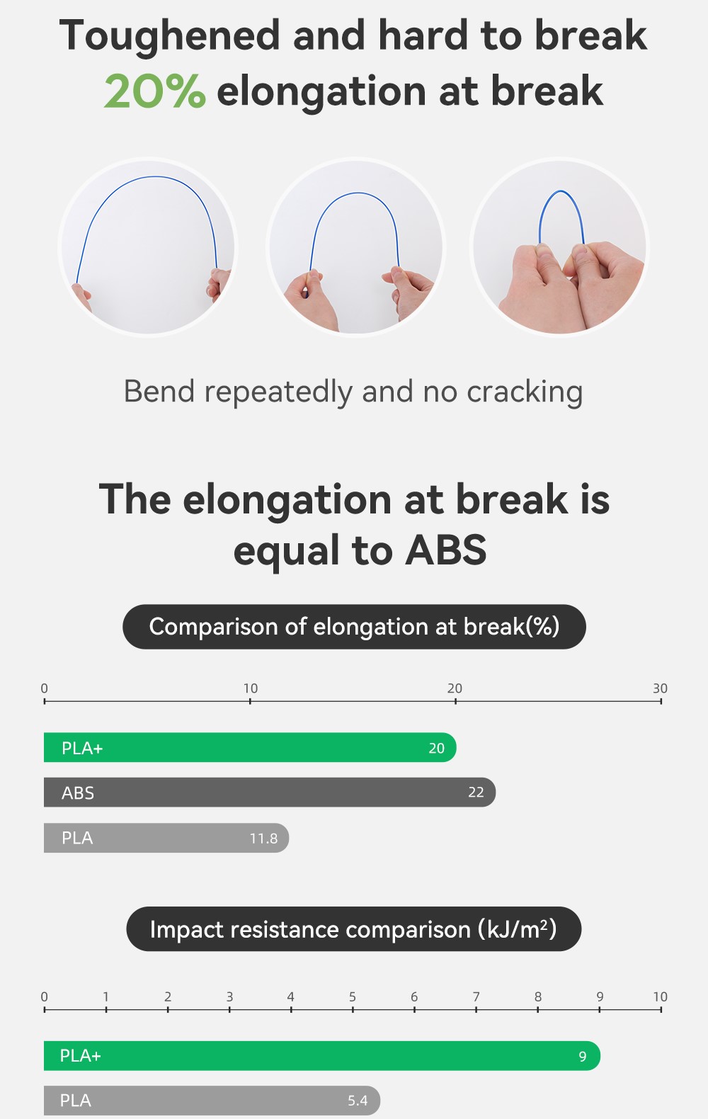 _Ứng dụng: Nhựa PLA+ hoàn toàn có thể thay thế Nhựa PLA trong ứng dụng. Thích hợp cho hầu hết các Máy in 3D FDM!