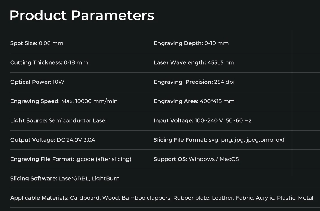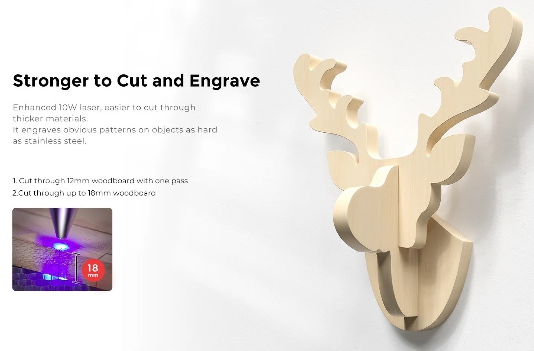 +Laser 10W cải tiến, dễ cắt hơn vật liệu dày hơn.
