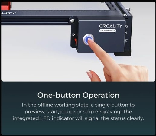 Ở trạng thái làm việc ngoại tuyến, một nút duy nhất để xem trước, bắt đầu, tạm dừng hoặc dừng khắc. Đèn LED tích hợp sẽ báo hiệu trạng thái rõ ràng.
