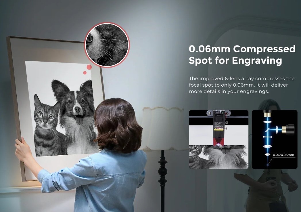 Dãy 6 thấu kính được cải tiến giúp nén tiêu cự xuống chỉ còn 0,06mm. Nó sẽ cung cấp nhiều chi tiết hơn trong bản khắc của bạn.