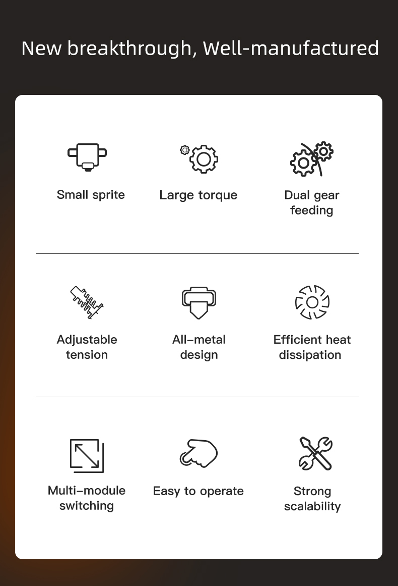 Hoạt động với các sợi khác nhau bao gồm PLA /TPU /PETG / ABS, v.v. Khả năng đa vật liệu