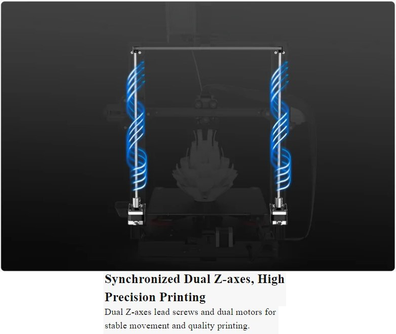 Vít dẫn trục Z kép và động cơ kép cho chuyển động ổn định và in chất lượng.