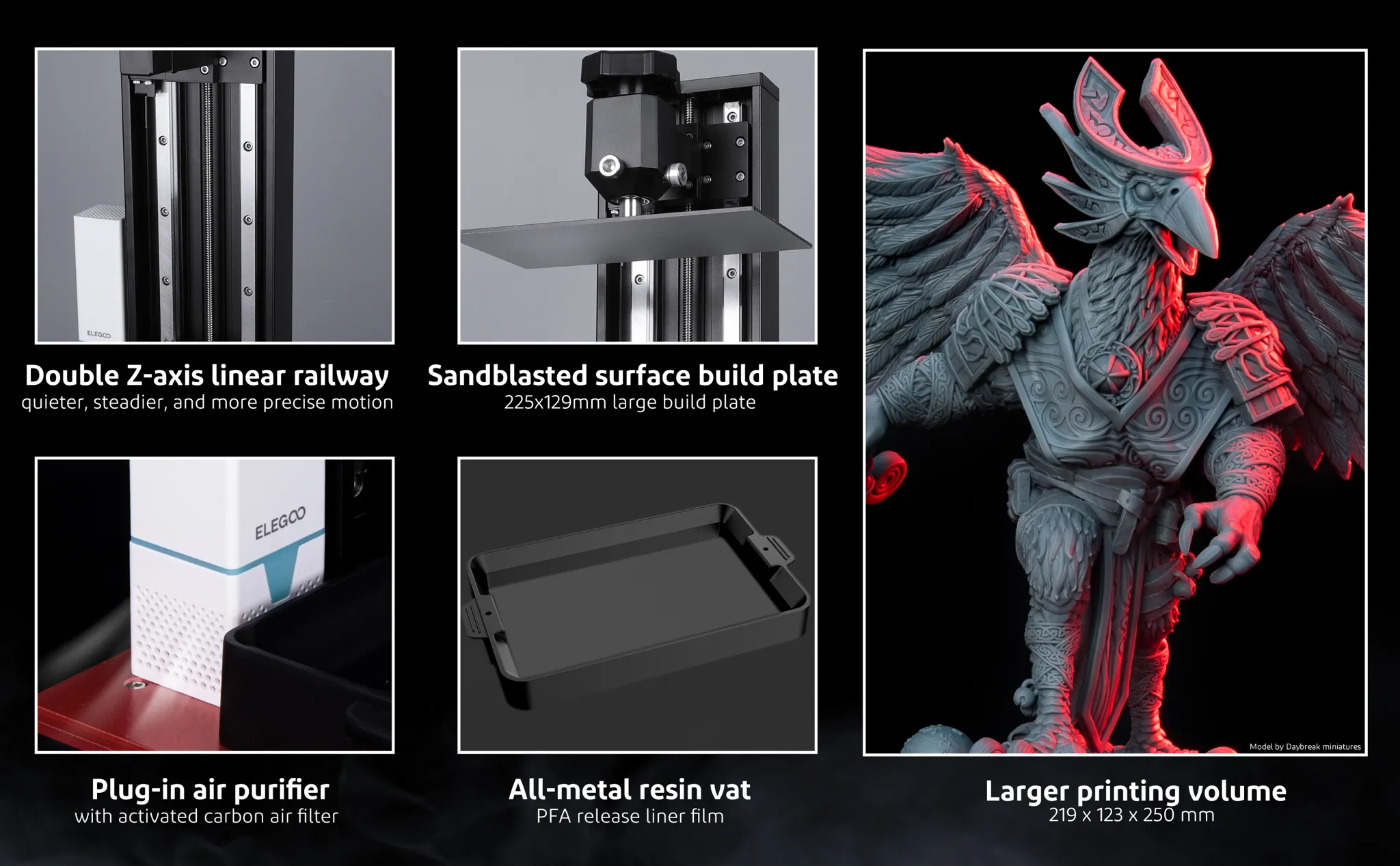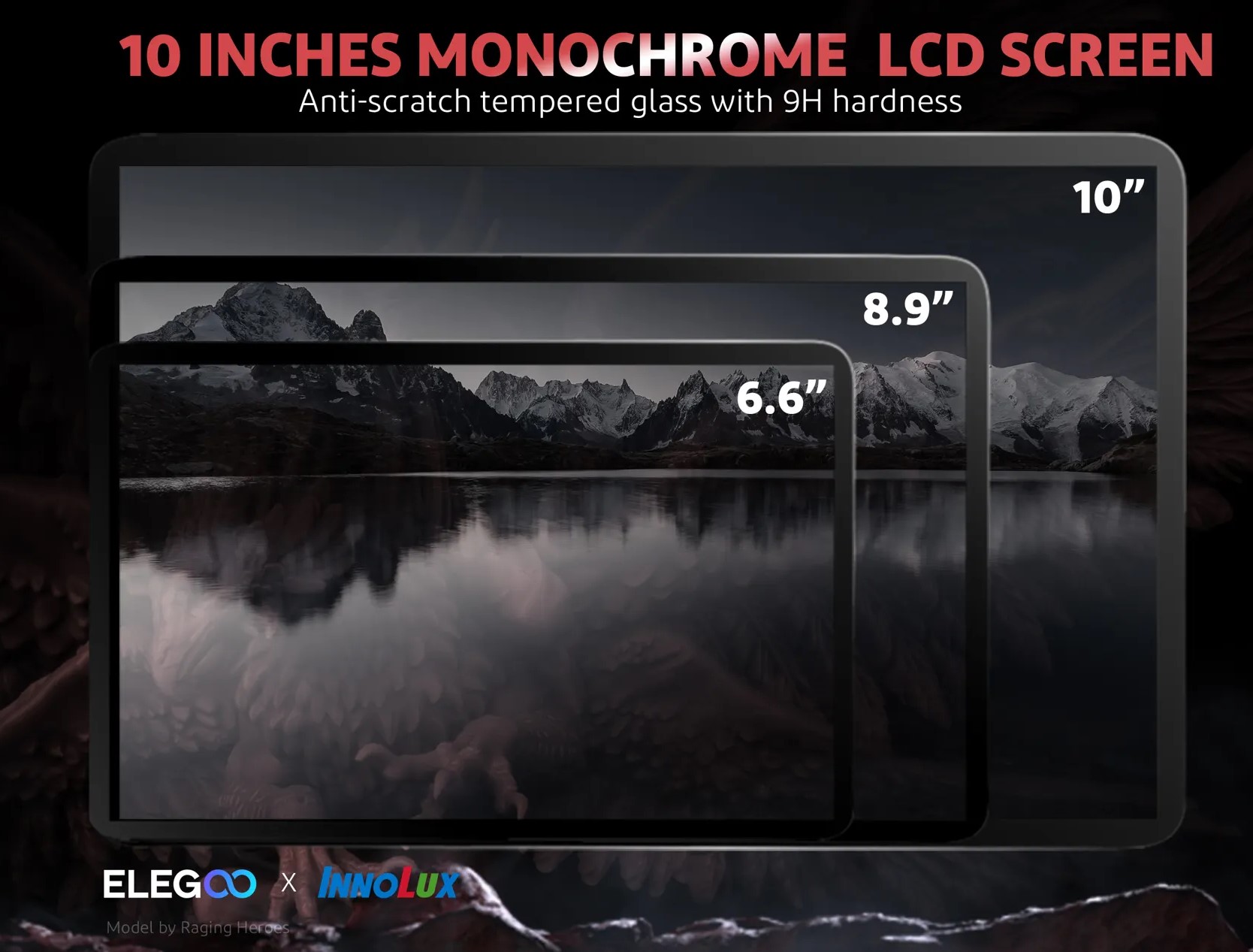 _【Lớn hơn 43% so với khối lượng in của Saturn】Với khối lượng bản dựng là 219x123x250mm / 8,62x4,84x9,84 inch và màn hình LCD đơn sắc lớn 10 inch giúp kích thước nguyên mẫu lớn hơn và hiệu quả xử lý cao hơn, bạn có thể in một hoặc nhiều mô hình lớn hơn mô hình nhỏ hơn trong một lô duy nhất.