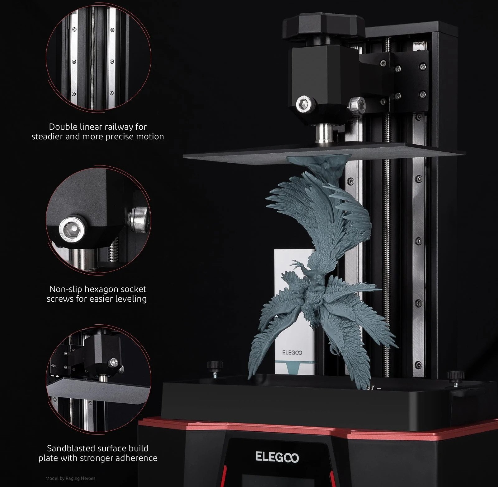 _【Hiệu suất in đáng tin cậy】Trục Z được thiết kế với các đường ray tuyến tính kép và vít cân bằng ổ cắm hình lục giác chống trượt để chuyển động cực kỳ ổn định và chính xác cũng như hiệu suất in vượt trội. Tấm xây dựng bề mặt phun cát cung cấp độ bám dính mạnh hơn nhiều và lớp lót giải phóng PFA giúp loại bỏ mô hình dễ dàng hơn và giảm lực căng giải phóng.