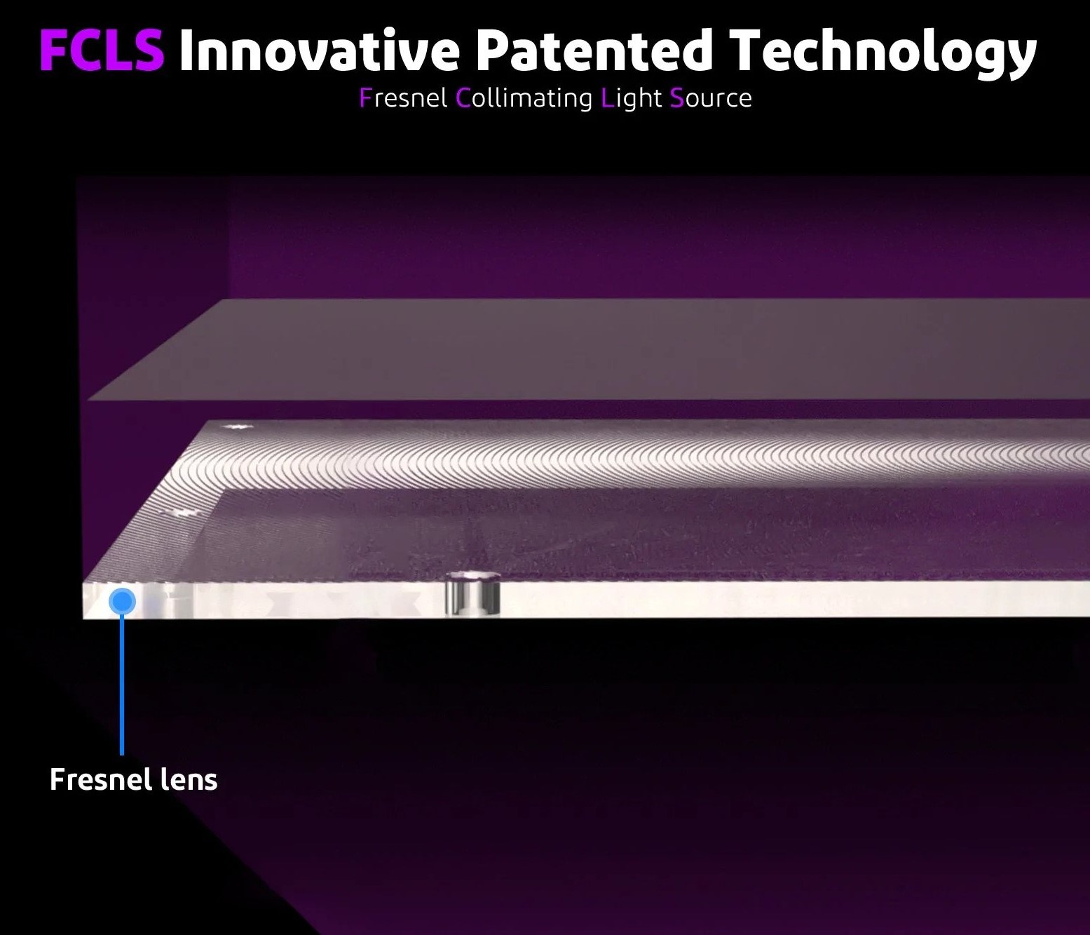 _【Nguồn sáng chuẩn trực Fresnel】Nguồn sáng chuẩn trực Fresnel bao gồm 48 đèn LED UV tích hợp cao hoạt động với thấu kính Fresnel của hệ thống FCL để phát ra chùm sáng đồng đều có bước sóng 405nm, độ chính xác in tuyệt vời và bề mặt mịn hơn.