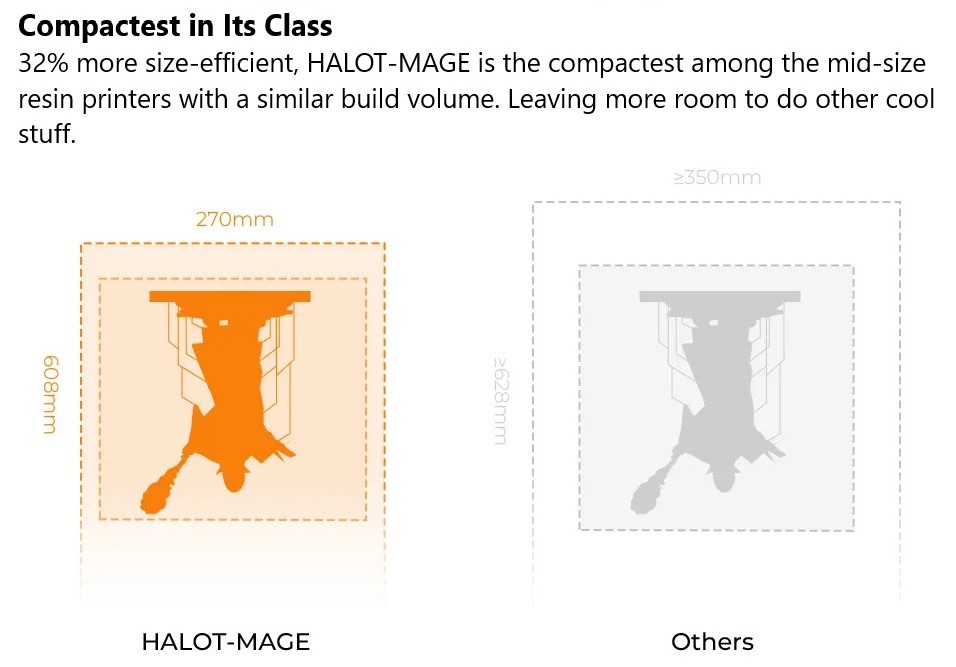 Tiết kiệm kích thước hơn 32%, HALOT-MAGE là máy nhỏ gọn nhất trong số các máy in nhựa cỡ trung bình có khối lượng in tương tự. Để lại nhiều chỗ hơn để làm những thứ hay ho khác