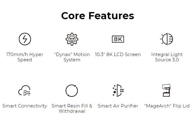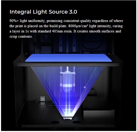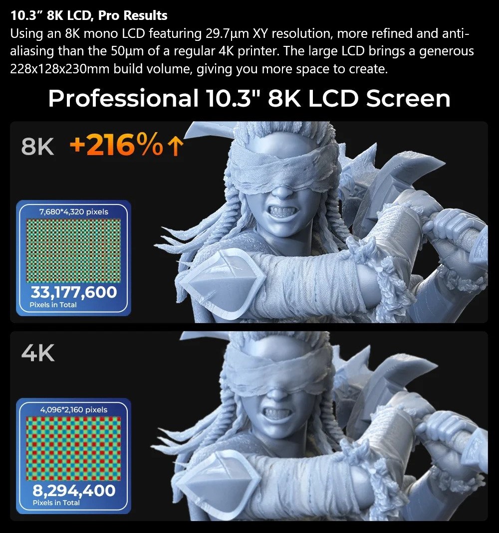 _HALOT-MAGE PRO sử dụng màn hình LCD mono 8K(7680x4320) có độ phân giải XY 29,7μm, được tinh chỉnh và khử răng cưa hơn so với 50μm của máy in 4K thông thường.