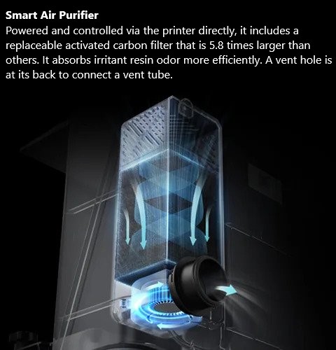 Được cấp nguồn và điều khiển trực tiếp thông qua máy in, nó bao gồm một bộ lọc than hoạt tính có thể thay thế lớn hơn 5,8 lần so với các bộ lọc khác. Nó hấp thụ mùi nhựa gây kích ứng hiệu quả hơn. Một lỗ thông hơi ở phía sau để kết nối một ống thông hơi.