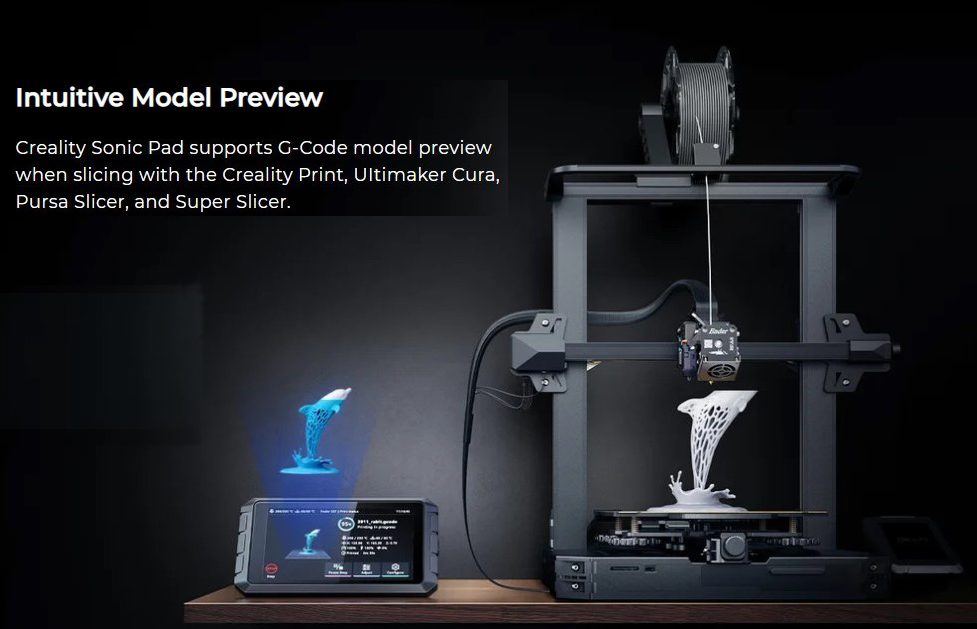 _Sonic Pad hỗ trợ xem trước mô hình G-Code khi cắt bằng Creality Print, UItimaker Cura, Pursa Slicer và Super Slicer.