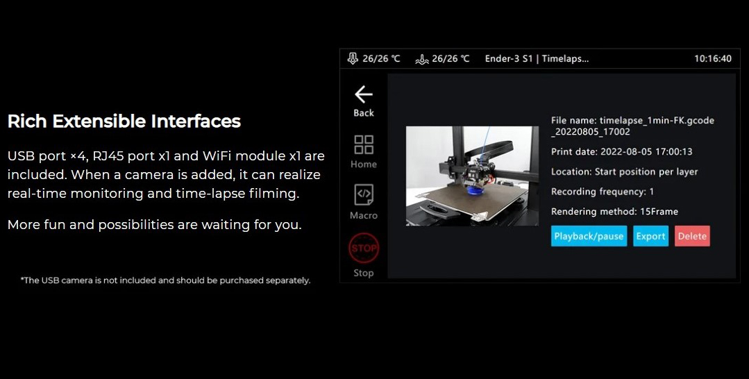Khi một máy ảnh được thêm vào, nó có thể thực hiện theo dõi thời gian thực và quay phim tua nhanh thời gian.