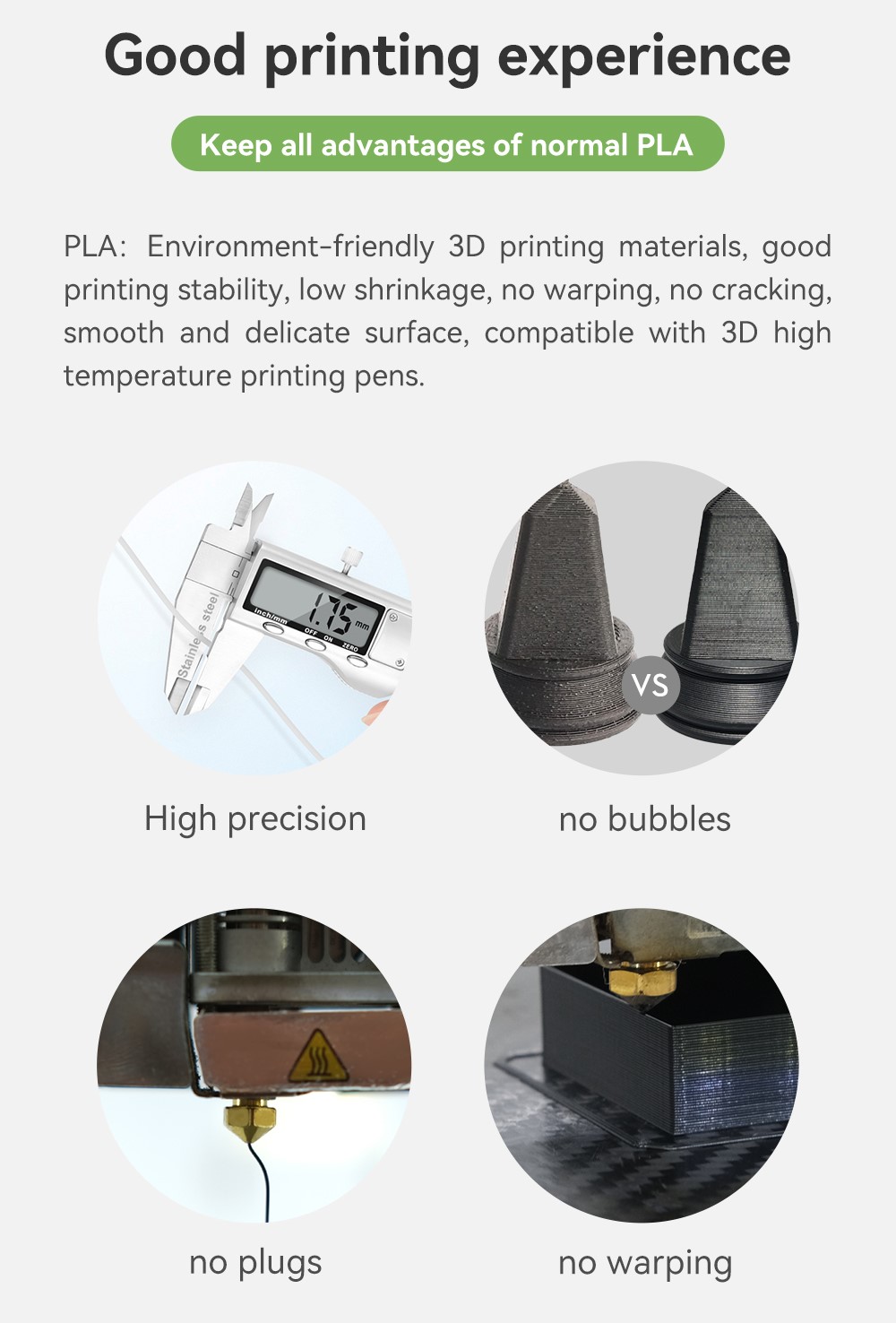 +Không có vấn đề về dây, bề mặt của bản in sẽ mịn hơn và tinh tế hơn;