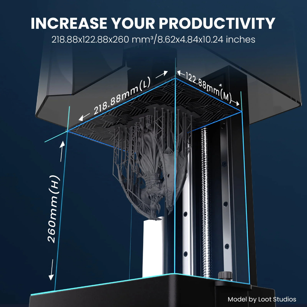 Nó có màn hình Mono LCD 10 inch 12K với độ phân giải 11520x5120 và độ phân giải XY là 19x24 micron, cho phép bạn in các mô hình với các chi tiết đặc biệt và các cạnh sắc nét