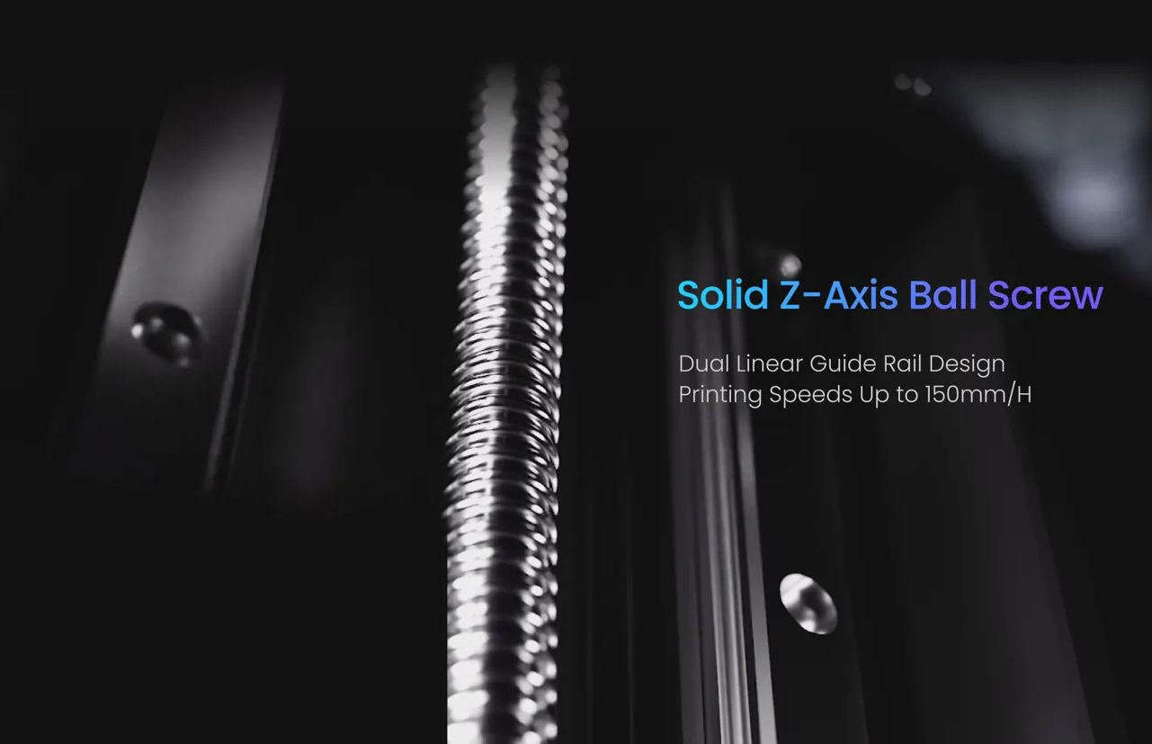 Trục Z có vít bi tích hợp và ray dẫn hướng tuyến tính kép, đảm bảo chuyển động cực kỳ ổn định và chính xác, ngay cả ở tốc độ in cao lên tới 150 mm/H, và giảm kết cấu lớp trên bản in cuối cùng của bạn