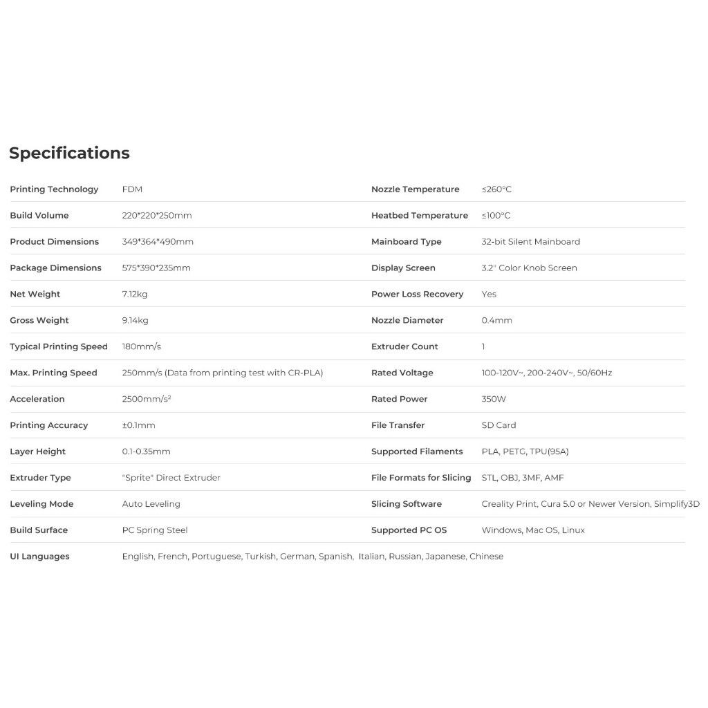 +Max. Printing Speed 250mm/s (Data from printing test with CR-PLA)