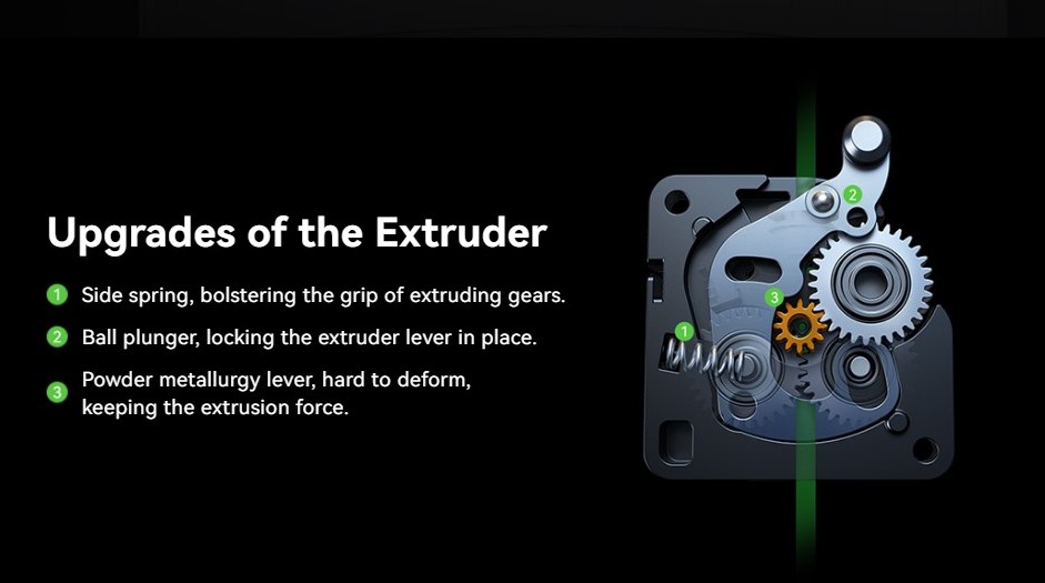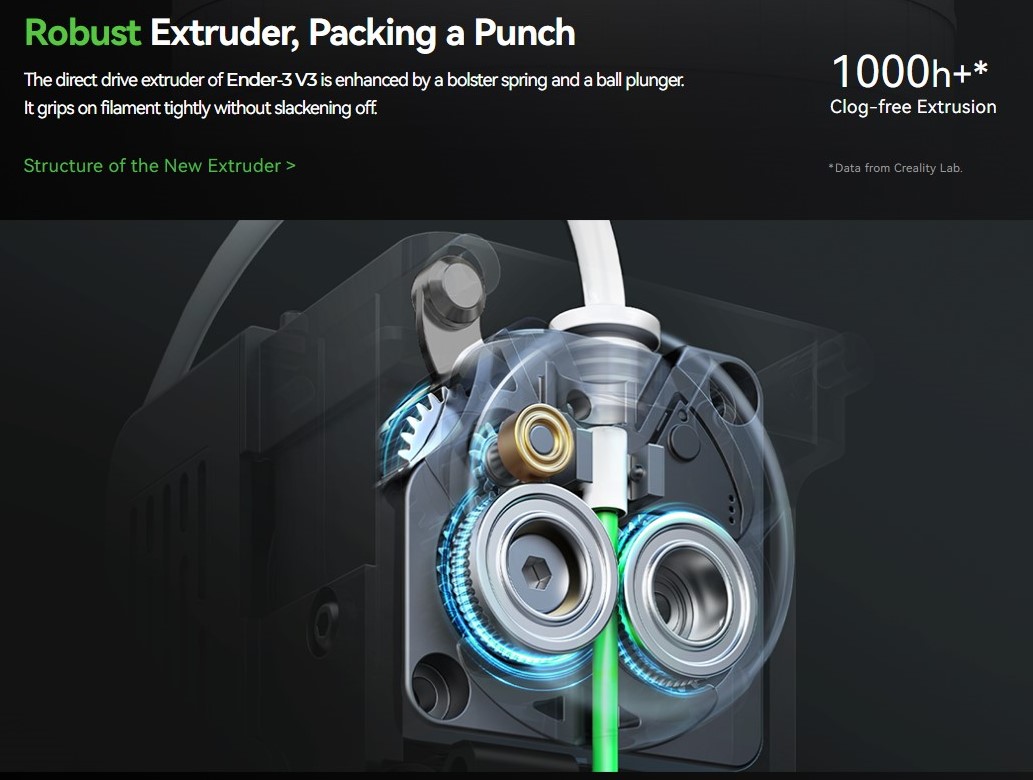 +Máy đùn truyền động trực tiếp của Ender-3 V3 được tăng cường nhờ lò xo tăng cường và pít tông bi.