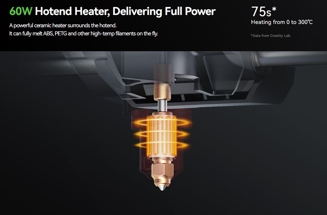 +Nó có thể làm tan chảy hoàn toàn ABS, PETG và các loại sợi nhiệt độ cao khác một cách nhanh chóng.