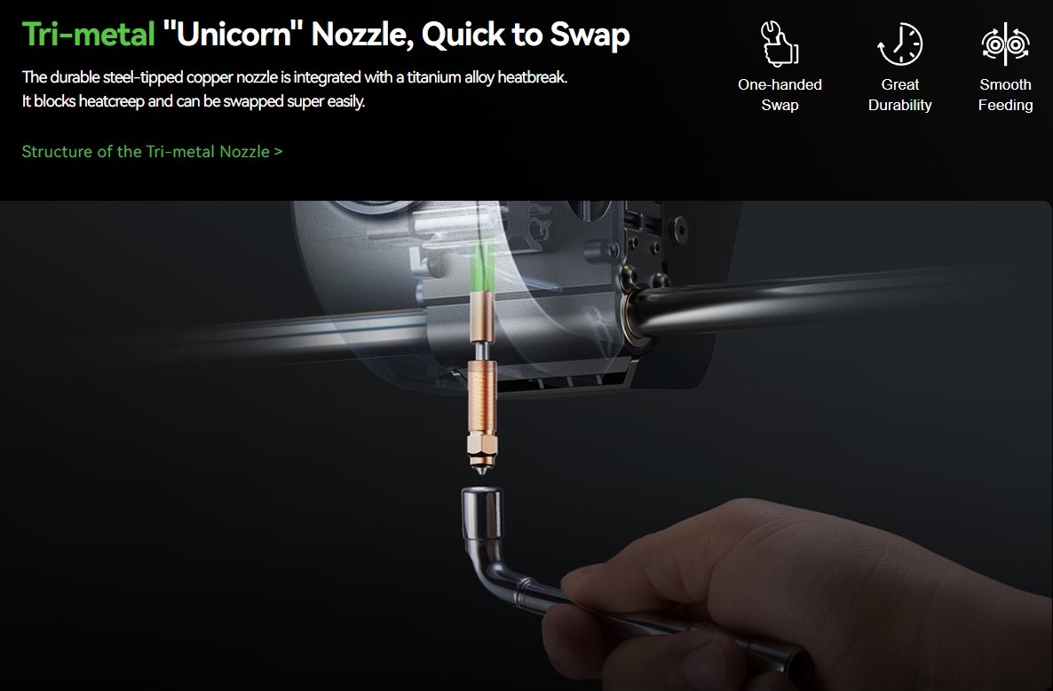 +Nozzle Kit: Quick-swap nozzle (hardened steel tip) integrated with heatbreak