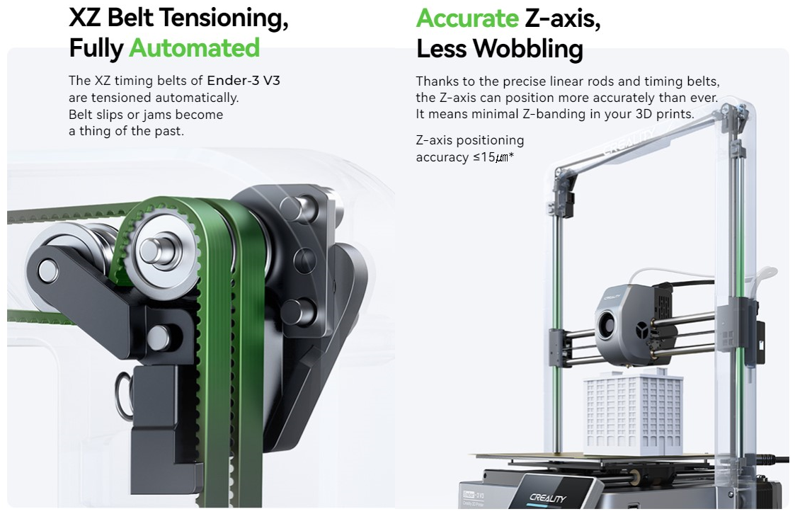 +Nhờ các thanh tuyến tính chính xác và đai định giờ, trục Z có thể định vị chính xác hơn bao giờ hết.