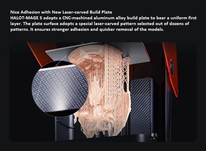 _HALOT-MAGE S sử dụng tấm chế tạo bằng hợp kim nhôm được gia công CNC để tạo lớp đồng nhất đầu tiên. Bề mặt tấm sử dụng hoa văn khắc laser đặc biệt được chọn lọc từ hàng chục mẫu