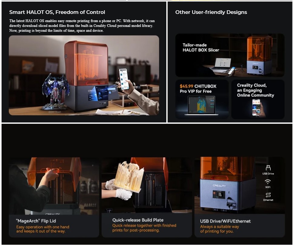 Máy in 3d resin Creality HALOT-MAGE S 14K tốc độ cao và chi tiết tuyệt đẹp khổ in 223*126*230mm
