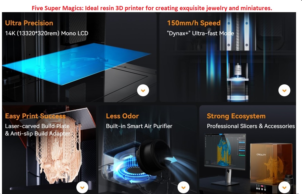 Máy in 3d resin Creality HALOT-MAGE S 14K tốc độ và chi tiết cao chuyên in Nữ Trang, Nha Khoa