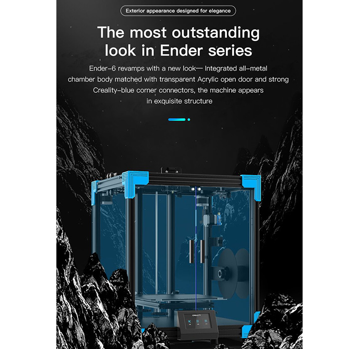 _Ngoại hình trang nhã:Ender-6 với diện mạo mới được tích hợp thân buồng bằng kim loại hoàn toàn phù hợp với cửa mở bằng acrylic trong suốt và góc màu xanh lam.