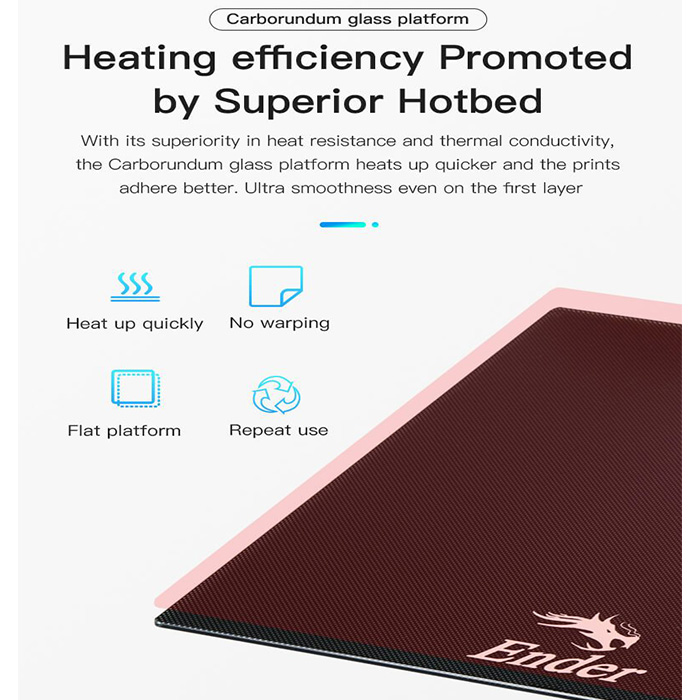 _Nền kính Carborundum: Với tính năng vượt trội về khả năng chịu nhiệt và dẫn nhiệt, nền kính Carborundum nóng lên nhanh hơn và các bản in bám dính tốt hơn. Cực mịn ngay cả lớp đầu tiên.