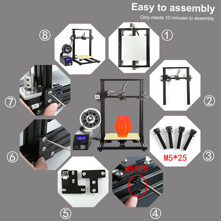 _Giường kính: Máy in 3D Creality CR-10 đi kèm với giường kính phẳng và đáng tin cậy. Hãy quên đi các máy in khác có bề mặt in 3D không bằng phẳng và giường bị cong vênh.